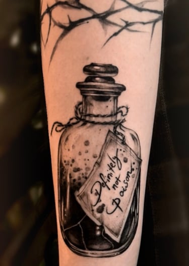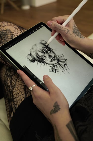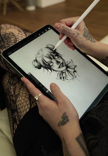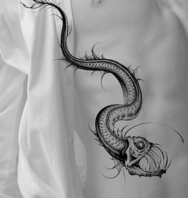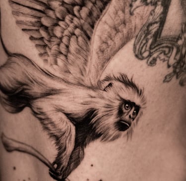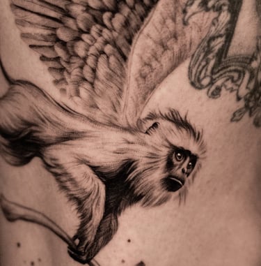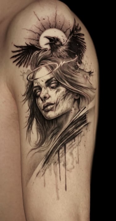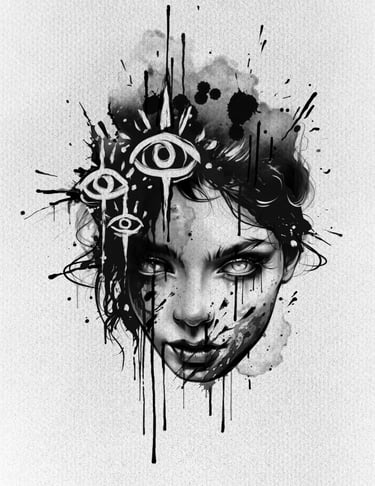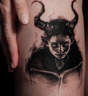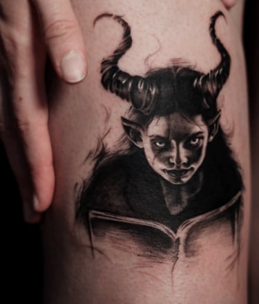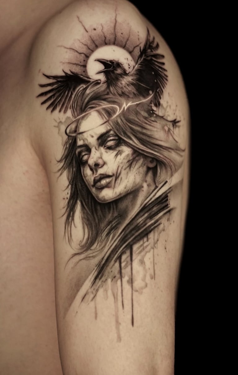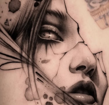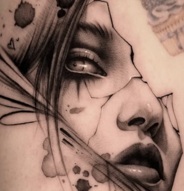 I find beauty in twisted portraits, black and grey realism and designs with a surrealistic touch.